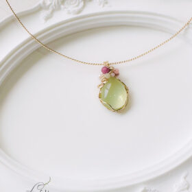 二つの美しい天然石を繋げたワイヤージュエリーペンダント