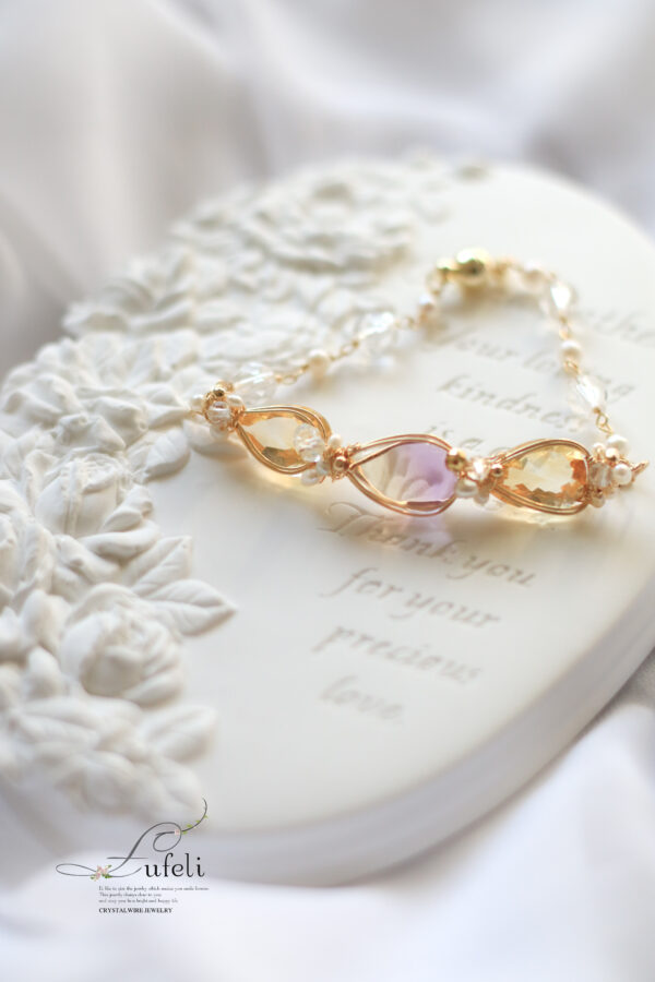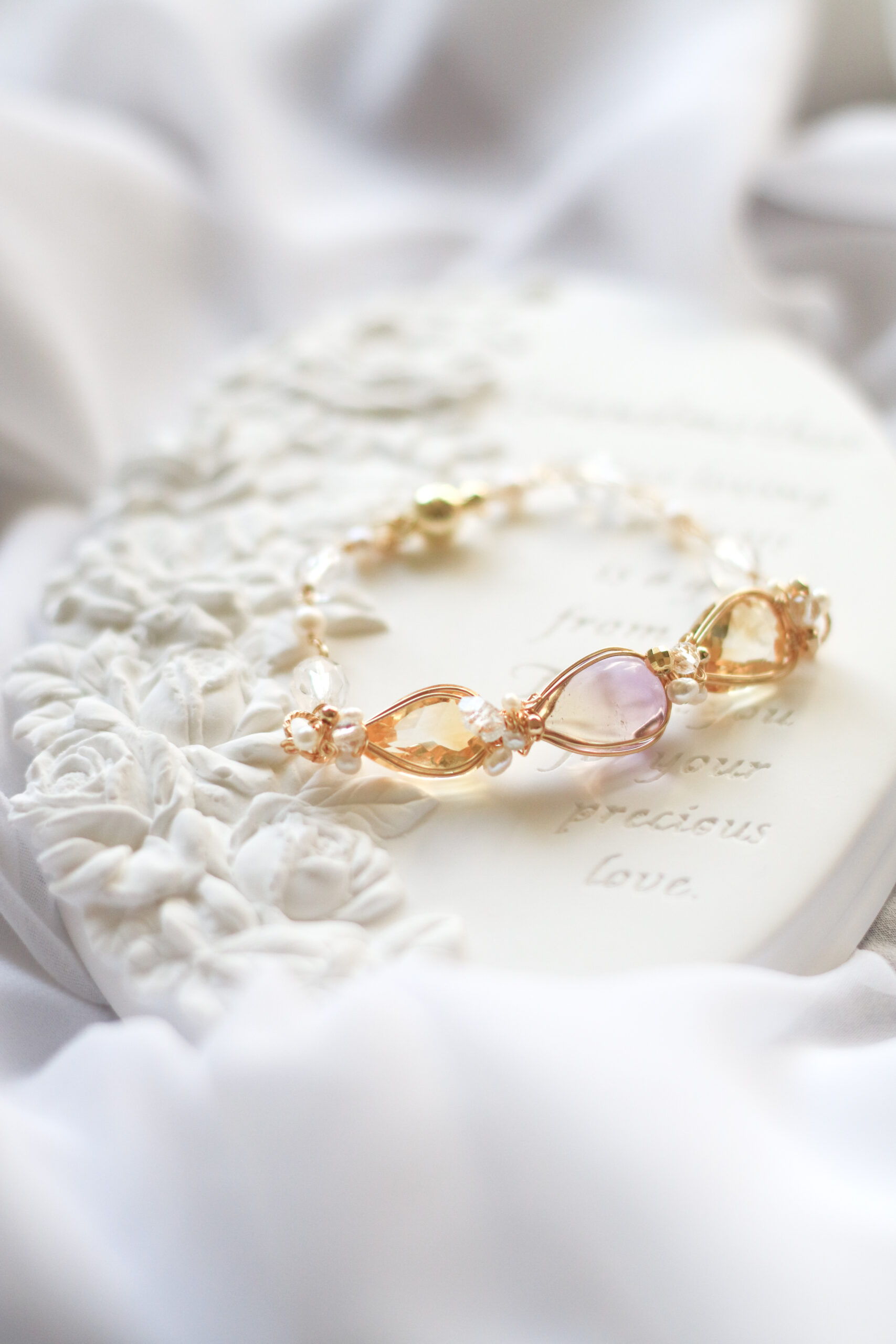 3つの天然石を繋げて制作するブレスレット。