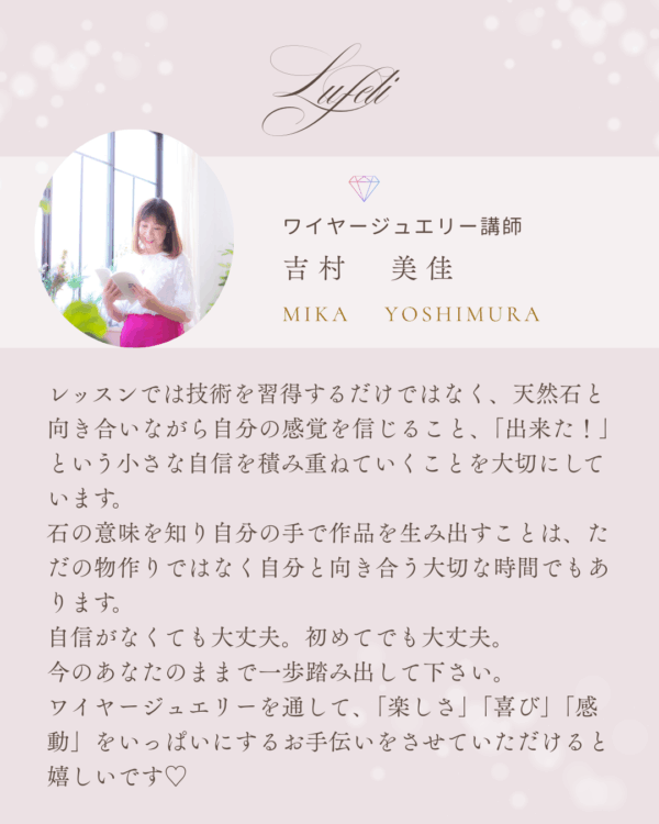 ワイヤージュエリーの世界をもう一歩、深く楽しむための講座です。