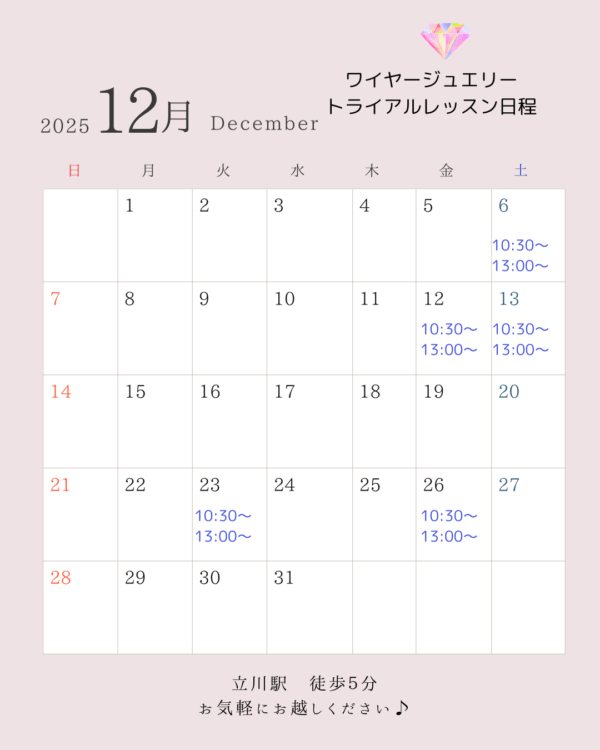 はじめての方でもうっとりとするほど素敵に仕上がる「天然石ワイヤージュエリー」をぜひ体験されてみて下さい。